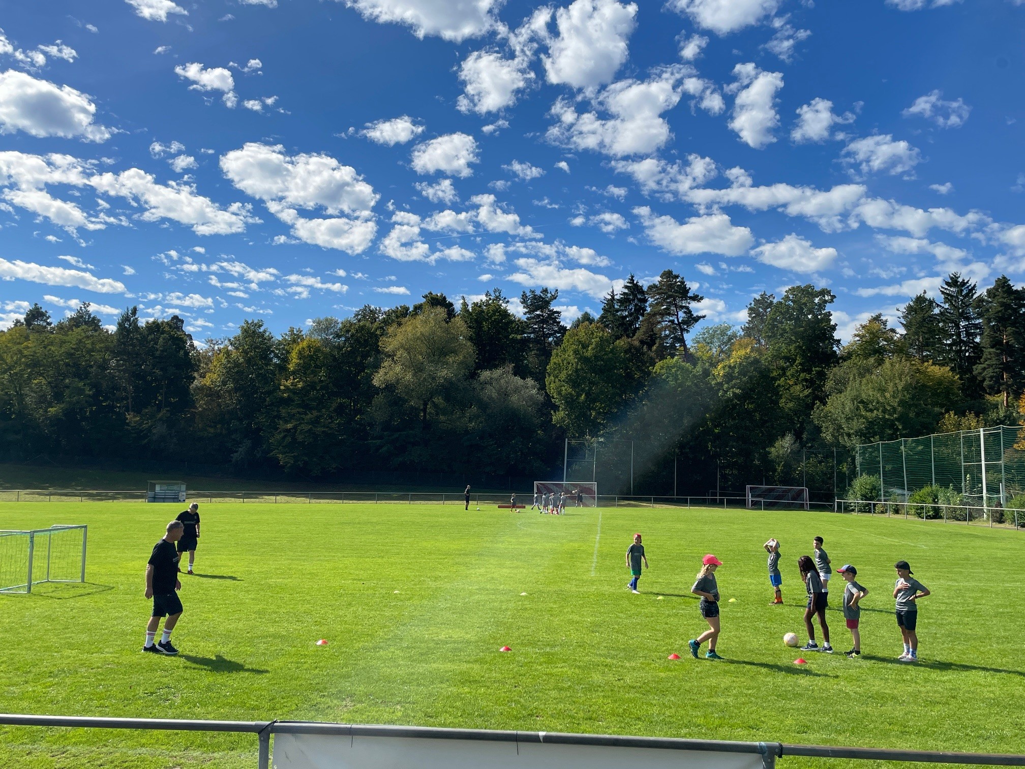 30 Kinder waren angemeldet und fanden sich am Samstag morgen pünklich zum Start des Camps am Sportplatz ein. Nach einer Begrüssung durch die Abteilung Fussball bekamen die Kids ihre Camp Shirts überreicht. Es konnte losgehen… am Anfang war leichter Regen doch das konnte die Begeisterung der Kids nicht schmälern. In 3 Gruppen wurden durch die VfL Trainer Fussballspezifische aber auch koordinative und spielerische Elemente vermittelt.